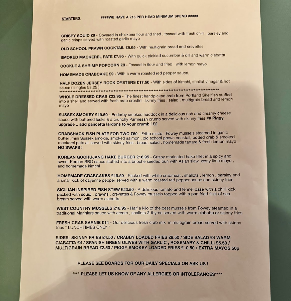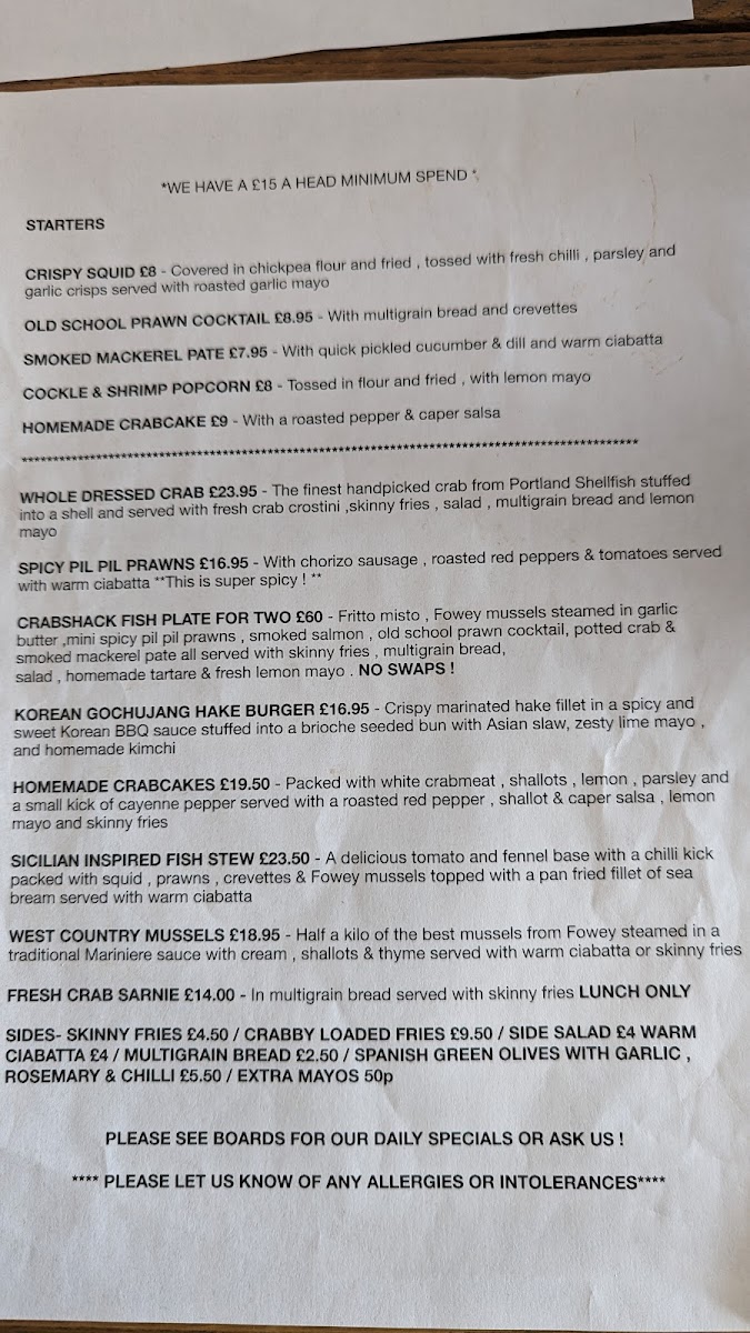 The highlights include a variety of expertly crafted seafood dishes. The dressed crab and fish tacos are local favorites, celebrated for their freshness and vibrant flavors. Customers rave about the beautifully presented crab cakes and the crispy squid, paired with zingy dips. For those seeking a true taste of the sea, the pil pil prawns shine with a perfect balance of spice.